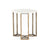A graceful twist on geometric-inspired design. An aluminum base of raw brass forms pentagons to support a rounded top of polished white marble. An open-air look lends lightness to heavy materials.