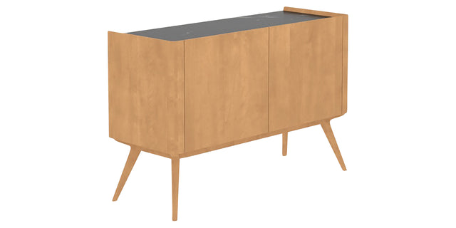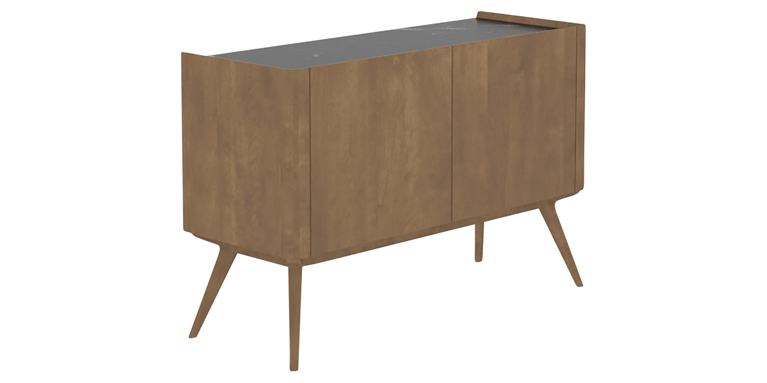 The Canadel Downtown Legz Mini Buffet adds charming storage in a petite footprint to any stylish space. The solid wood frame and legs support a refined onyx porcelain top. This buffet can be customized to your decor and design taste.