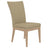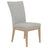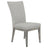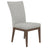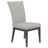 This contemporary chair features a curved upholstered back and seat, sure to complement many dining room decors.