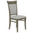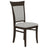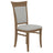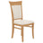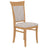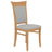 This chair features a wooden frame with a flared design that complements its upholstered back and seat.