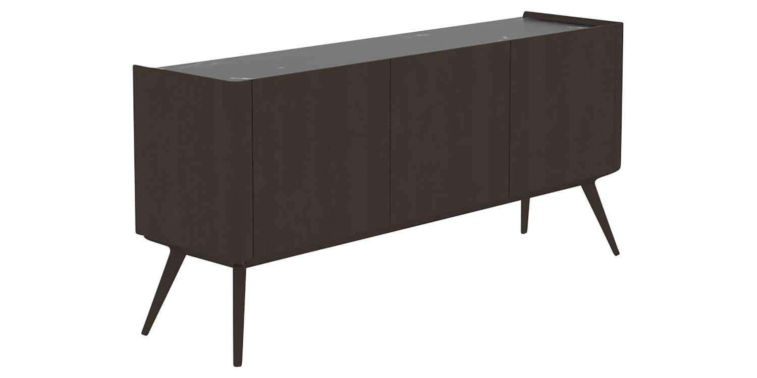 The Canadel Downtown Legz Buffet impresses with its namesake splayed legs, an intriguingly curvaceous solid wood design and a beautiful onyx porcelain top surface. This buffet can be customized to your decor and design taste.