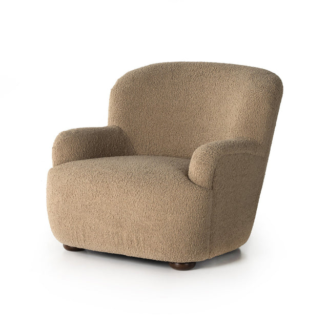 The Kadon Chair is simply classic. A high wing back pairs with softly rolled arms for a curvy look and supportive sit. Tan or cream shearling-like upholstery invites you to sit and stay a while. The Kadon Chair is part of the Norwood collection.