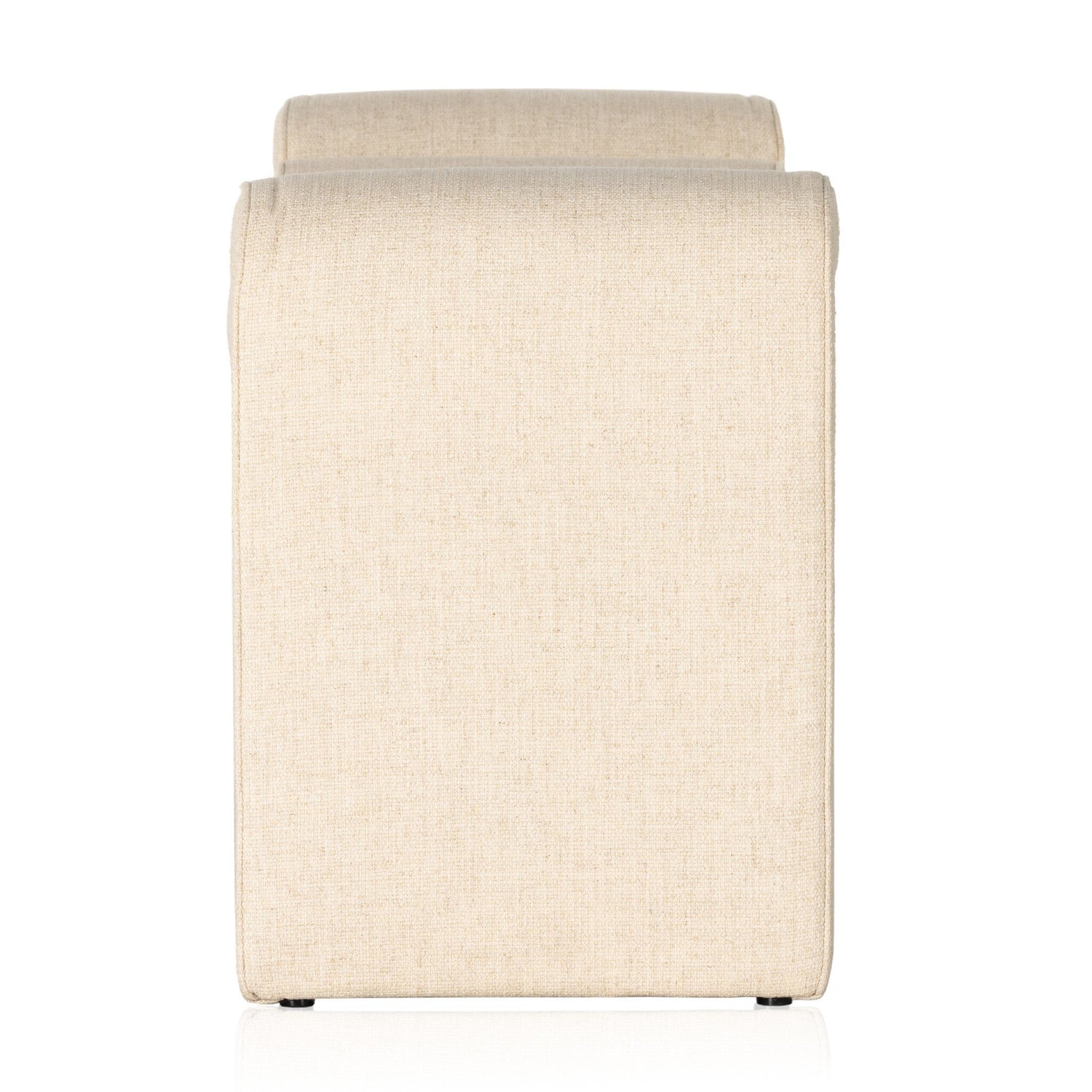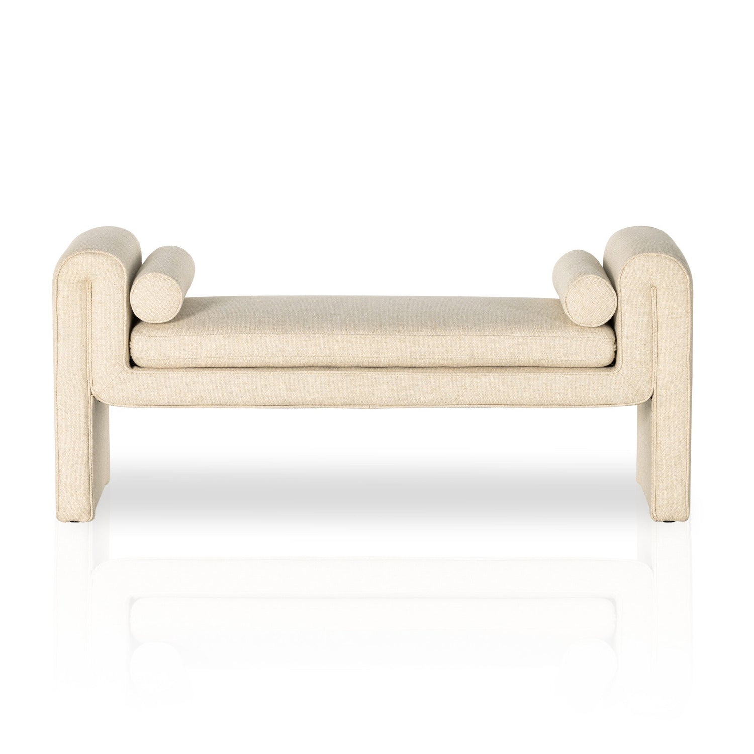 With bold proportions and soft angles, the Four Hands Mitchell Accent Bench brings sculptural presence to modern seating spaces. The bench-style frame is fully upholstered in performance fabric and finished with distinctive folded side panels and matching bolster pillows. Available in a range of versatile finishes to complement surrounding decor.