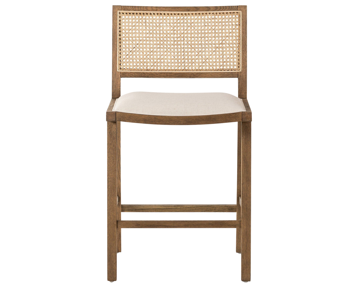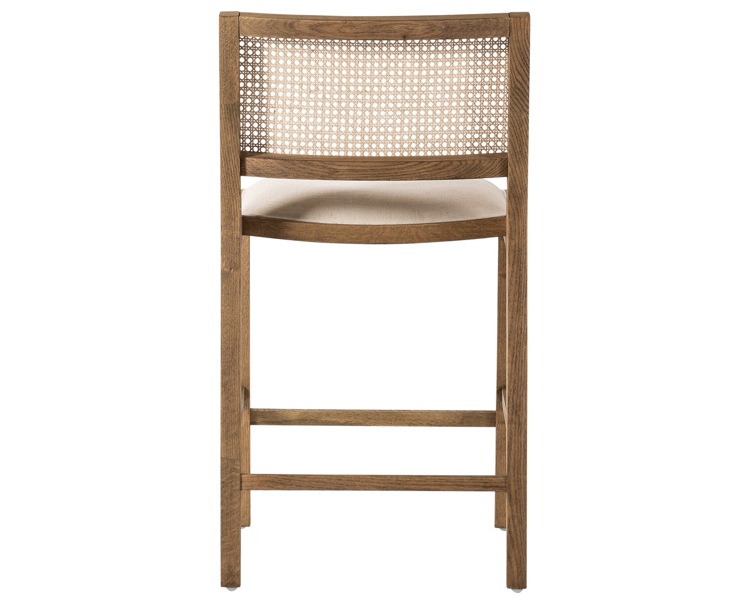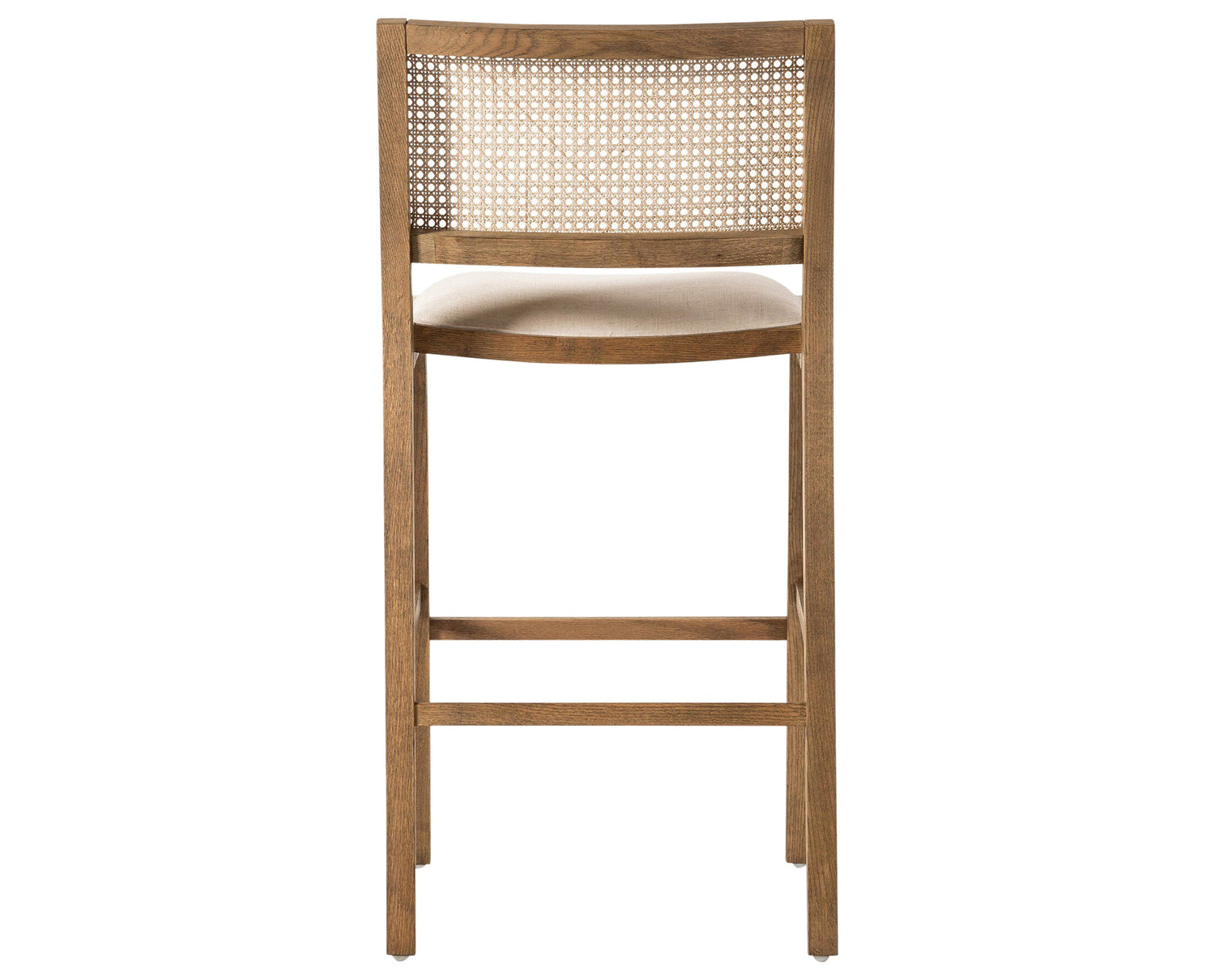 A modern approach to mixed-material elegance, the Sage Bar + Counter Stool balances natural texture and warm tone with clean, minimalist geometry. The seat is upholstered in faux leather with a softly rounded front edge for added comfort, while the backrest showcases woven cane paneling for organic appeal. Solid natural beech wood legs anchor the design with subtle tapering and gentle curves, creating a refined, versatile silhouette suited to any setting. Available in bar- or counter-height options to accommodate a variety of spaces, from kitchen islands to lounge areas.