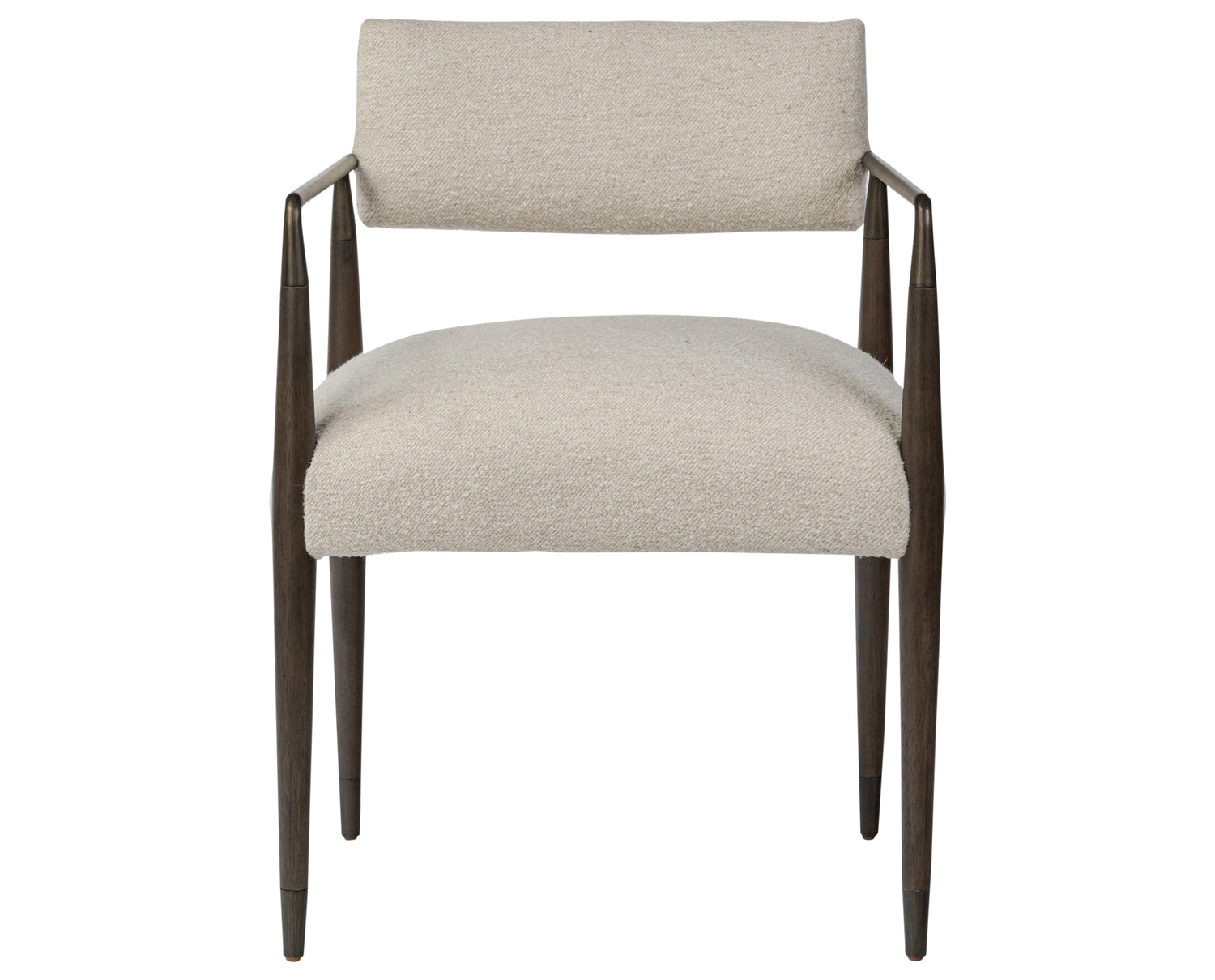The open silhouette and curved back ensure relaxed support during long dinners and casual conversations alike. Designed to thrive in modern dining settings, this chair also stands out in home offices or accent arrangements. Performance fabric resists spills, stains, and everyday wear, making it ideal for homes that value both style and resilience.