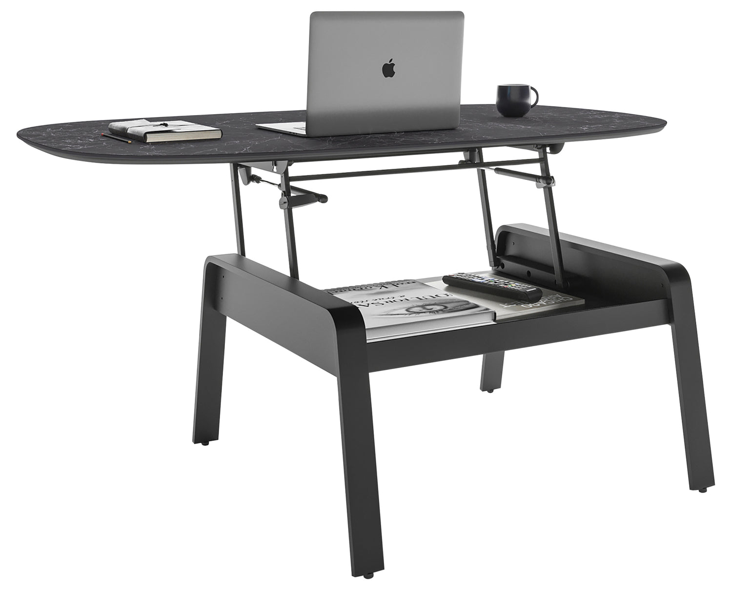 The BDI Cloud 9 Lift Coffee Table is a beautiful contemporary design that boasts thoughtful features and impressive functionality. Smoothly gliding from its lowered position to the perfect height for work or play, the Cloud 9 features a durable porcelain top that conceals a lined lower storage compartment. When extended, the elegant porcelain tabletop surface floats at just the right height for working on a laptop or enjoying a meal on the sofa, while remotes and other essentials remain accessible when the lift-top is closed.