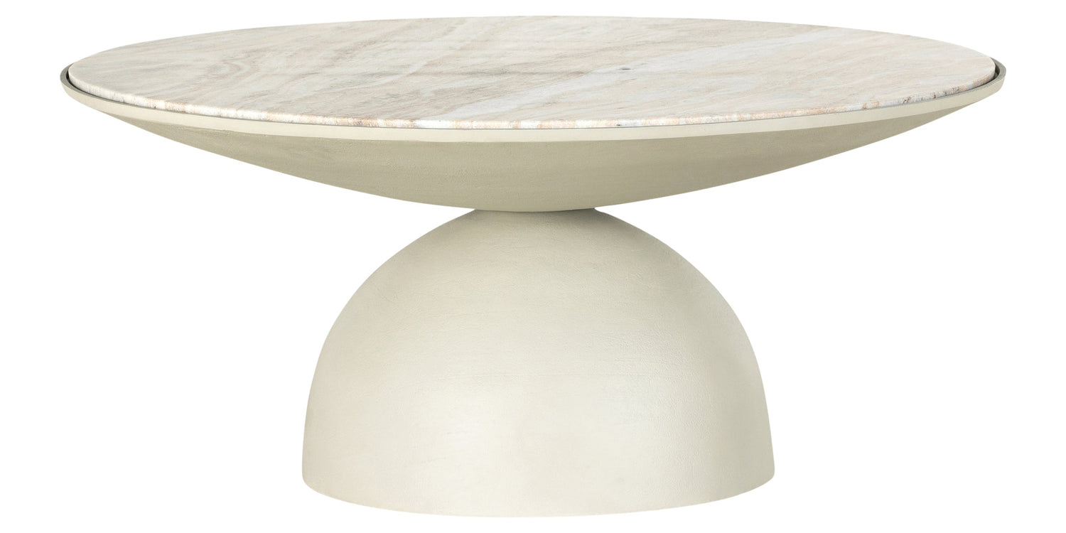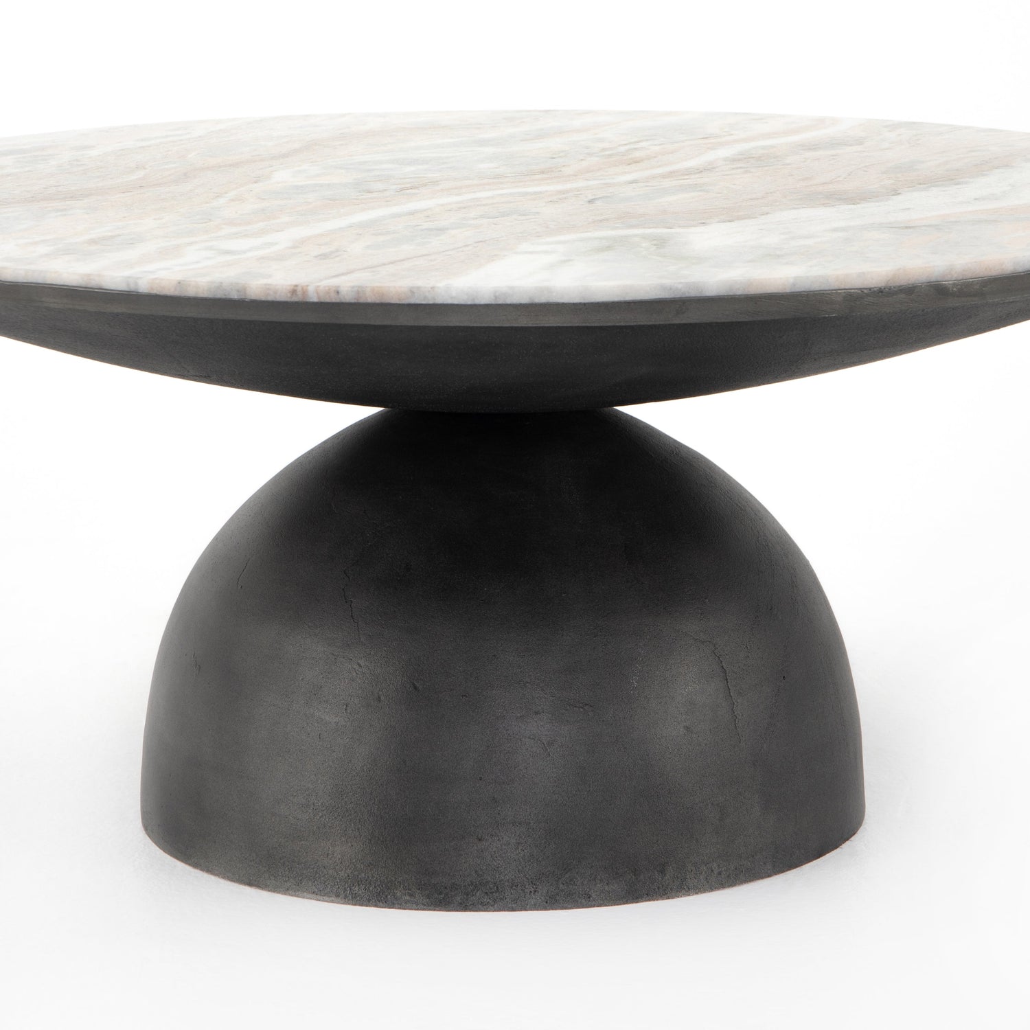 Corbett Coffee Table - Creamy Taupe Marble / Hammered Grey Aluminum is backordered and will ship as soon as it is back in stock.