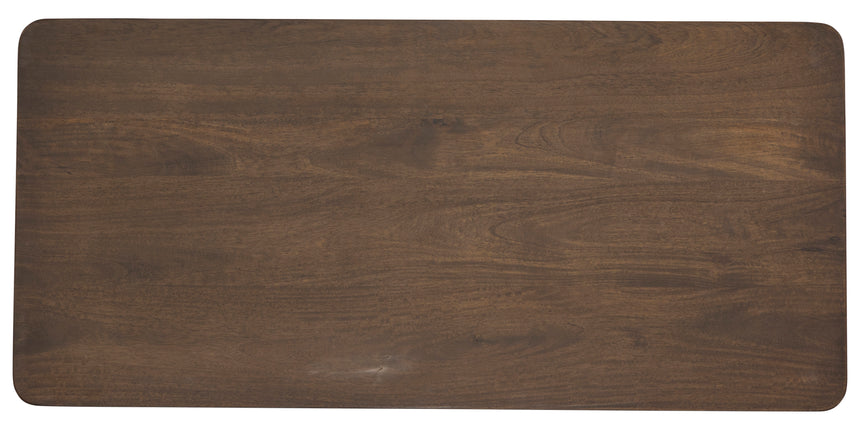 The Myla Coffee Table features an organic-spirited design sure to impress. This design makes a statement with chunky, aged brown-finished solid mango wood. The Myla Coffee Table is part of the Merritt collection.