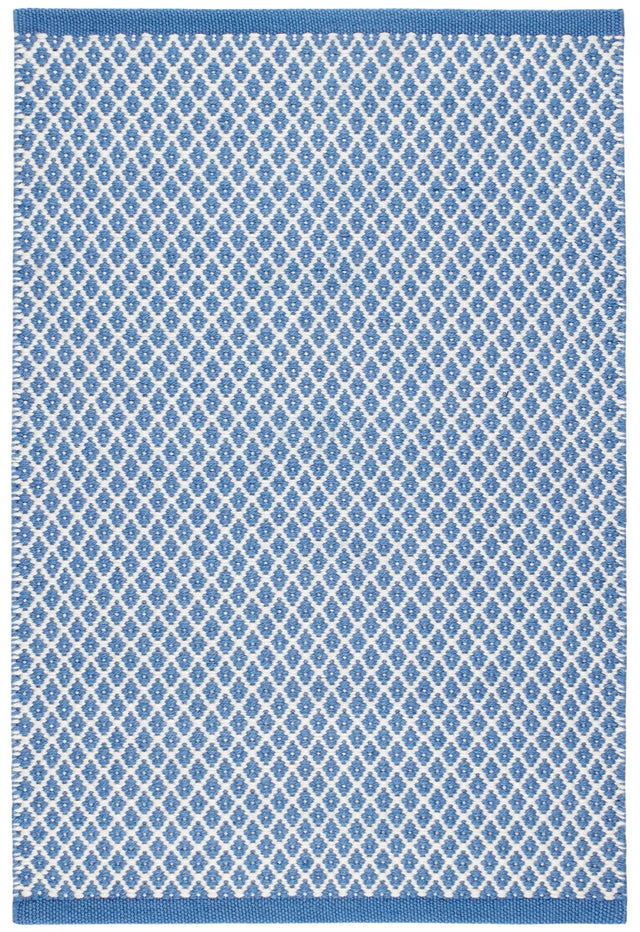 A classic lattice diamond in versatile blue and ivory color combo offers subtle geometric interest on a durable and washable floor covering. Made of eco-friendly 100% PET, a soft-handed fiber from recycled plastic bottles.