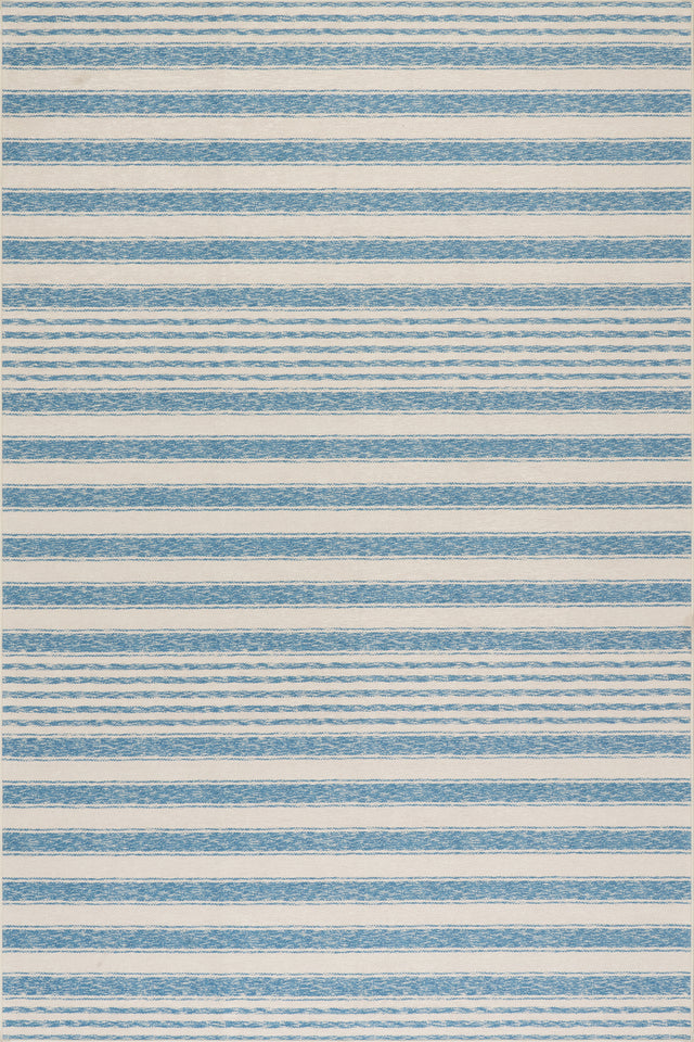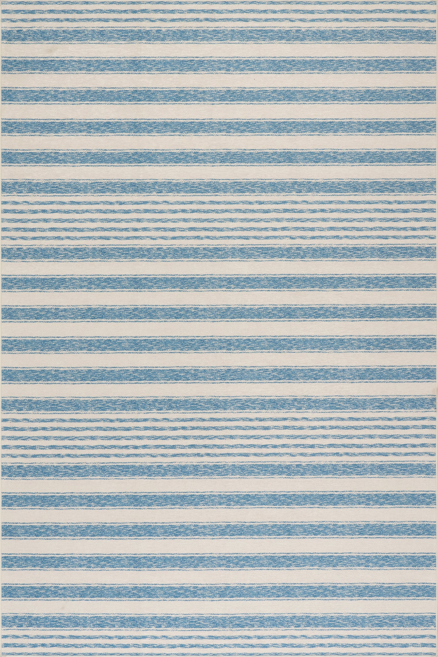A crisp striped design brings a coastal vibe to this washable synthetic rug. It's a practical and stylish choice for any room, with a versatile look that's easy to clean and maintain.