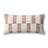 This woven throw pillow features a muted rust and ivory broken stripe pattern with raised stitched detailing. The pillow cover is made of cotton and polyester and measures 12” x 27”, an elongated size to style in living rooms and bedrooms.