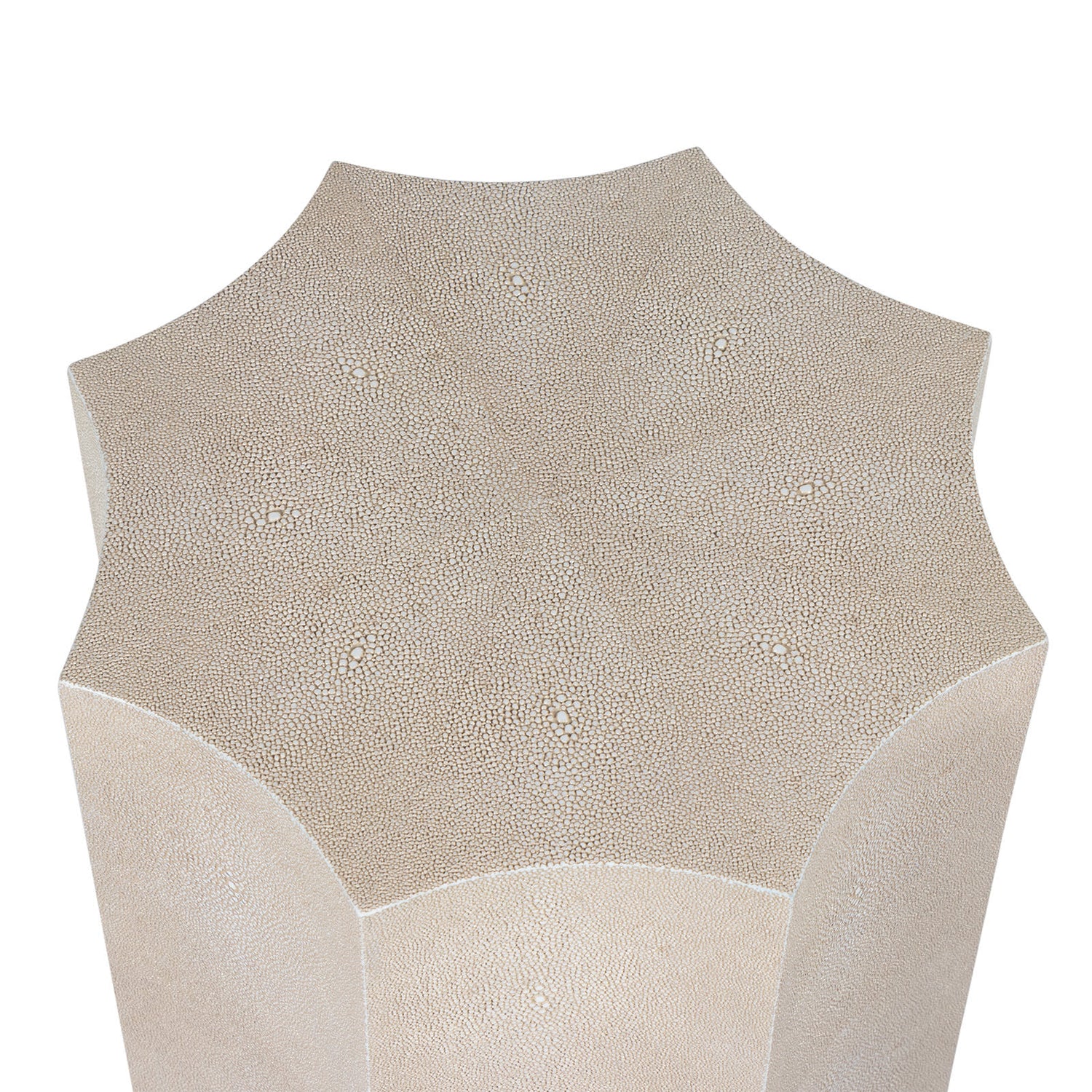 Reminiscent of that famous white dress, the small Marilyn Shagreen Scalloped Table features a fluttering scallop made modern in faux shagreen. With soft dapples and just a hint of grey, this petite beauty pairs perfectly with almost any sofa or accent chair.
