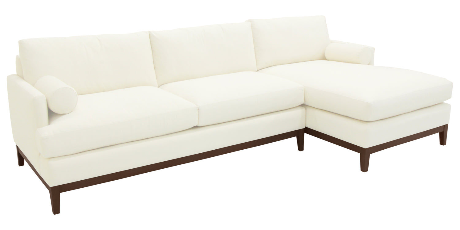 The Camden Manhattan Sofa w/Right Chaise offers refined modern comfort with a sleek, tailored silhouette suited for contemporary living spaces. Its extended chaise provides generous lounge space while maintaining the clean lines and balanced proportions that define the Manhattan series. As a Valley Ridge exclusive, this sofa pairs soft performance upholstery with hand-finished wood legs for long-lasting durability and elevated everyday style.