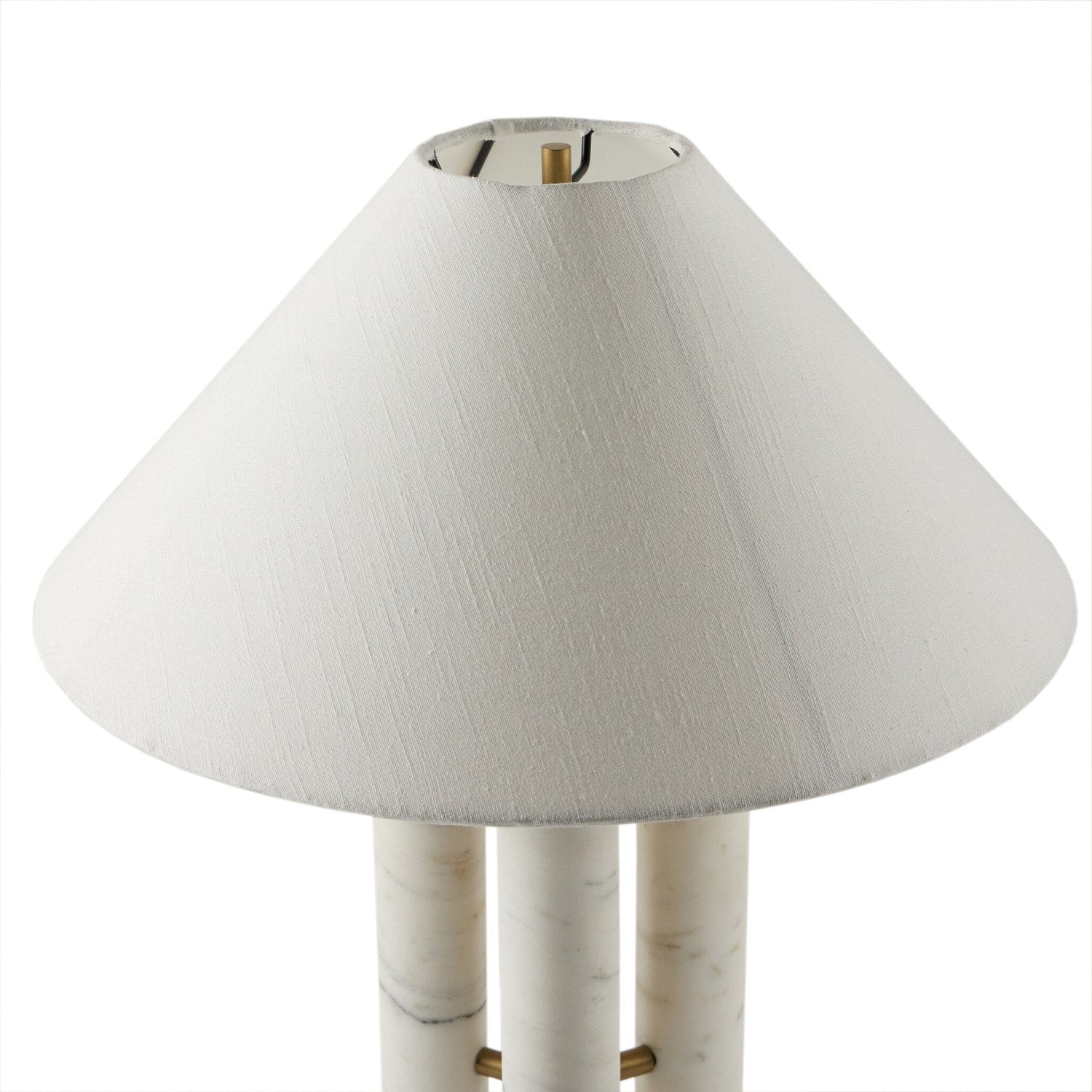 The Four Hands Medici Table Lamp brings sculptural elegance to tabletop lighting. Inspired by classical Italian architecture, this striking design features three rounded columns of smooth white marble and a crisp, conical shade. Brass-toned hardware provides a warm accent and subtle contrast. Offered in multiple shade finishes to suit a variety of spaces.