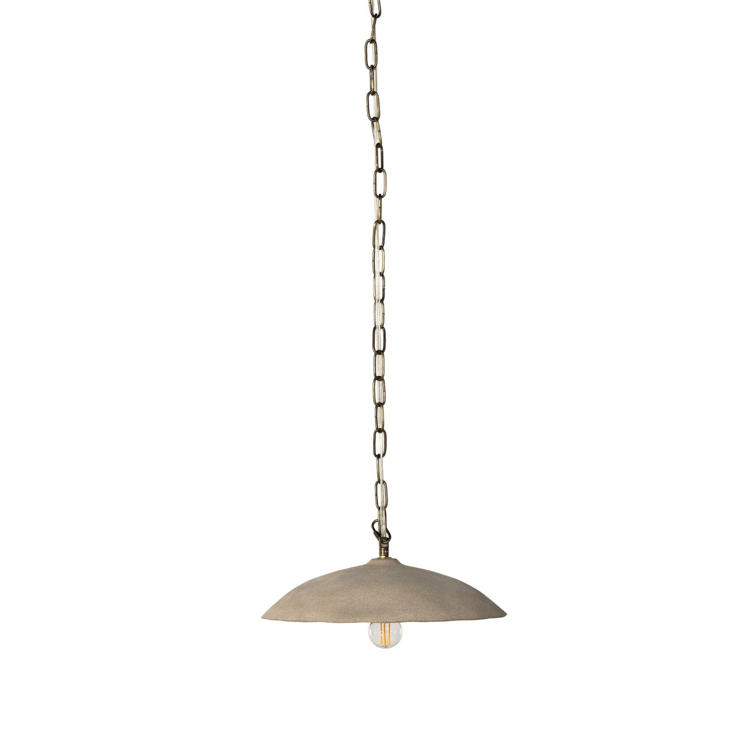 The Organic Ceramic Pendant by Four Hands blends natural materials with refined proportion. A light sand-coloured talavera ceramic shade is suspended from a streamlined iron chain, offering sculptural presence with minimal bulk. Its versatile profile adapts well to dining, entry, or lounge spaces.