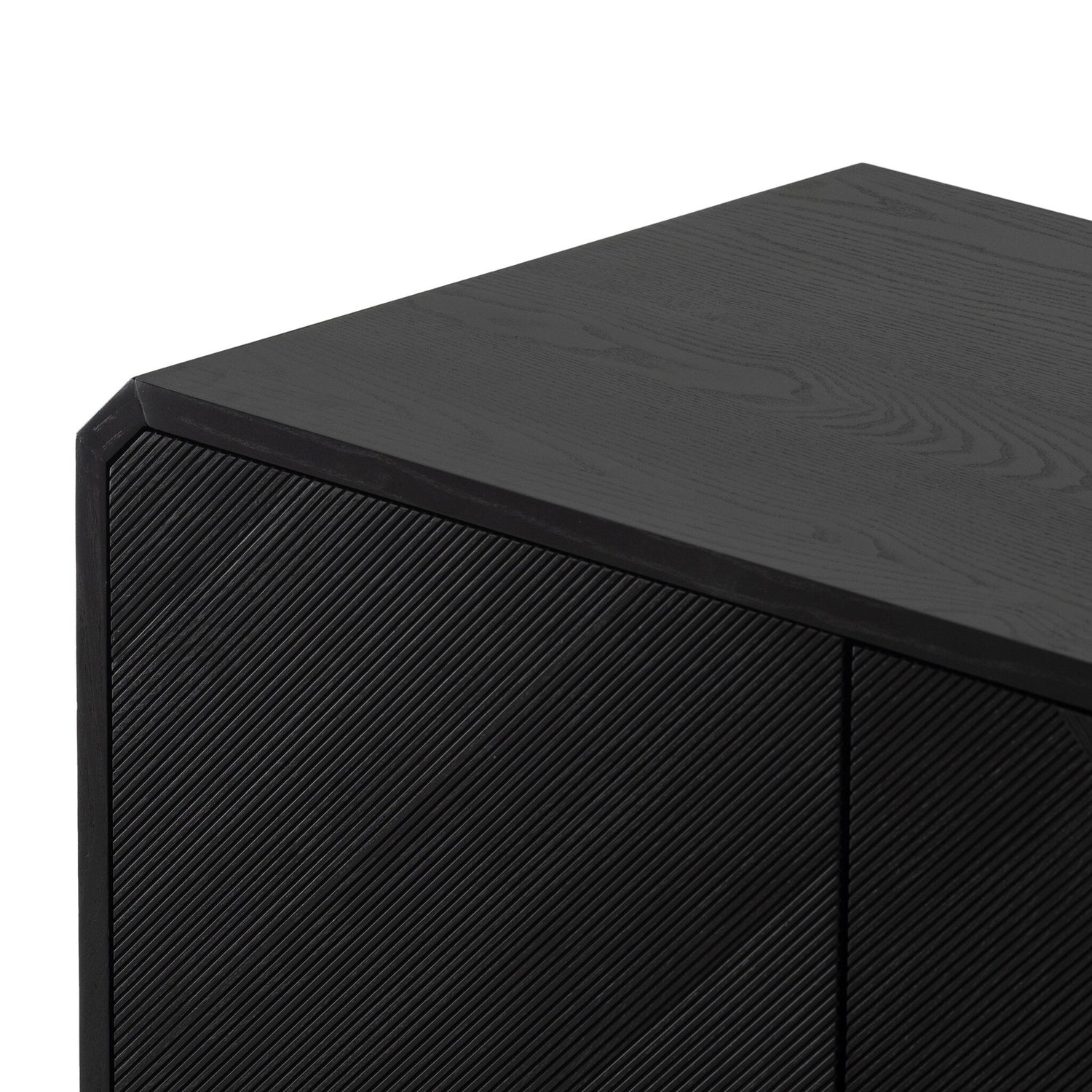 The Caspian Sideboard draws from Seventies-era inspiration with a fresh, versatile form. Available in multiple finishes, including Natural Ash Veneer and Black Wash Veneer, this streamlined piece features reeded door fronts, chamfered edges, and a raised plinth base. Its thoughtful proportions and tactile detailing elevate any living or dining space.