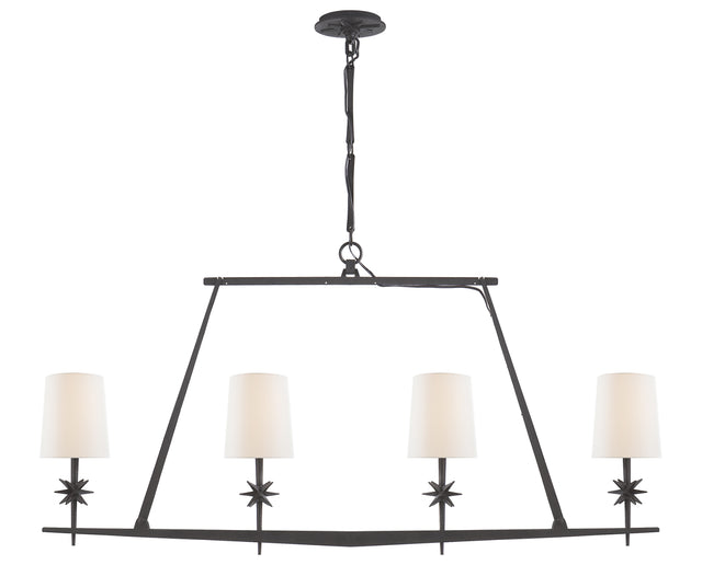 The Etoile Linear Chandelier gives off a chic, effortless appearance. This fixture features a radiant row of lights punctuated by small starbursts. The natural paper shades create a warm glow that complements the metal framework. The Etoile chandelier takes a direct line to decadence with its slim profile and elongated body. The Etoile Linear Chandelier is part of the Ian K. Fowler collection.