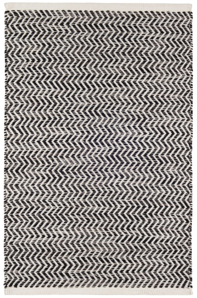 This eco-friendly and washable rug is handwoven in easy-care, soft-handed performance yarns that stay beautiful indoors and out. The marled ground is overlaid with graphic textured chevrons to give this classic herringbone design a new rhythm and movement. Another classic sun, rain, dog, and child-proof rug design, sustainably made from recycled water bottles with fair labor practices.