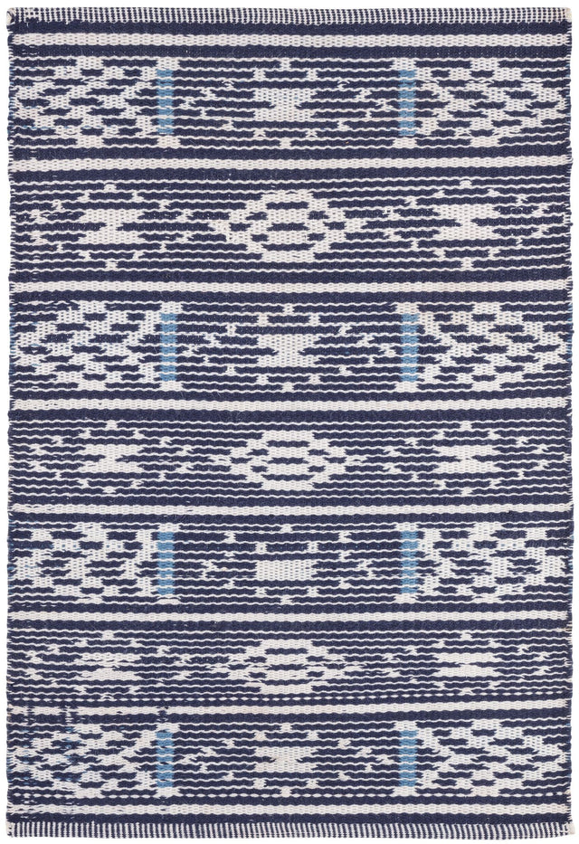 Inspired by an antique Baule indigo weaving, this indoor/outdoor jacquard woven rug is perfect for high-traffic areas. Low-profile, washable and eco-friendly, it lies flat and stays put with the look and feel of natural fiber. Handwoven in easy-care, soft-handed performance yarns that can stand up to whatever life throws its way.