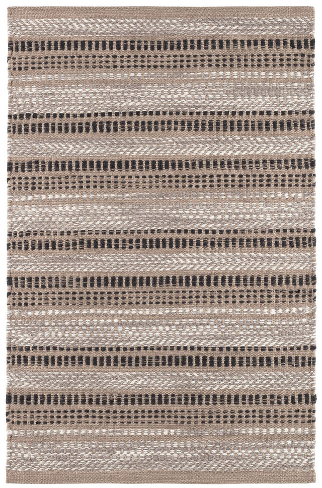 Twill and dobby stripes of exposed floats in sophisticated, marled color gradations create a subtle back and forth of a textural weave. Flatwoven from resilient and washable recycled P.E.T. performance threads, this durable and fade-resistant rug feels as soft as cotton but will stand up to whatever everyday life brings its way.