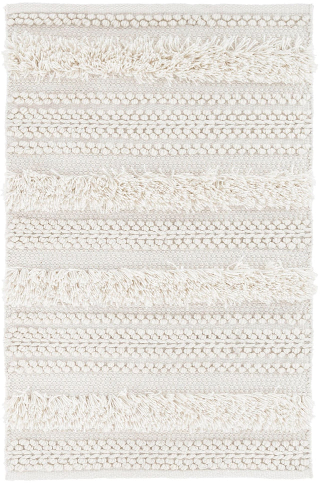 In this monochrome ode to texture, ivory stripes of nubby knots and sultry shag exude a relaxed, bohemian flair. Handcrafted in "wool-touch" fibers that are engineered to be washable and stand up to just about everything.