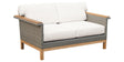 A two-seat wicker and teak settee that balances durability, design versatility, and comfort with a modern edge.