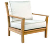 Blending timeless form with ergonomic comfort, the Kingsley Bate Chelsea Lounge Chair offers a refined take on deep outdoor seating. Crafted from solid Grade A teak, it features softly curved back slats, a sling seat deck, and generously scaled proportions for superior relaxation. Designed for versatility, it anchors patios, porches, and garden spaces with transitional elegance and enduring craftsmanship.