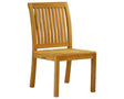 A sleek, armless teak chair designed for comfort, versatility, and enduring outdoor beauty.
