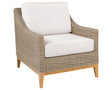 The Frances Lounge Chair pairs timeless outdoor elegance with plush, inviting comfort. Woven in premium all-weather wicker over a solid Grade A teak base, its gently sloped arms and wide proportions create a welcoming seat for leisurely afternoons. Designed for year-round use, this chair delivers both style and durability in outdoor living environments.