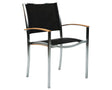 Modern and minimalist, the Tiburon Dining Armchair offers a refined balance of style and function. Crafted with a #304 stainless steel frame, Batyline™ sling seating, and a contoured teak armrest, this armchair brings sophistication to any outdoor dining setting. Its clean lines and mixed-material construction complement both residential and commercial environments.