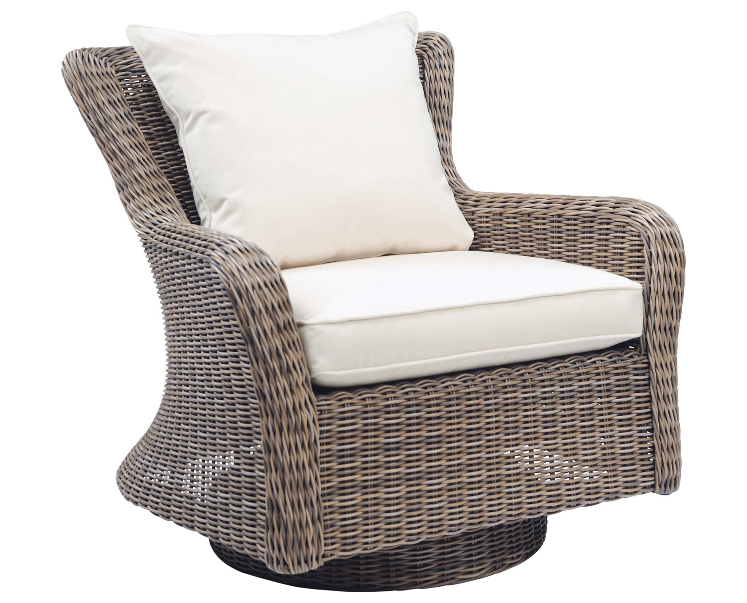 Blending luxurious comfort with smooth motion, the Sag Harbor Swivel Rocker Lounge Chair offers a sophisticated update to classic outdoor relaxation. Handwoven in Kingsley Bate’s exclusive all-weather wicker, its generously curved form and deep seat cradle the body, while the concealed swivel and rocking base provide effortless movement. Designed to withstand the elements with grace, this lounge chair invites hours of comfort on the patio, porch, or poolside.