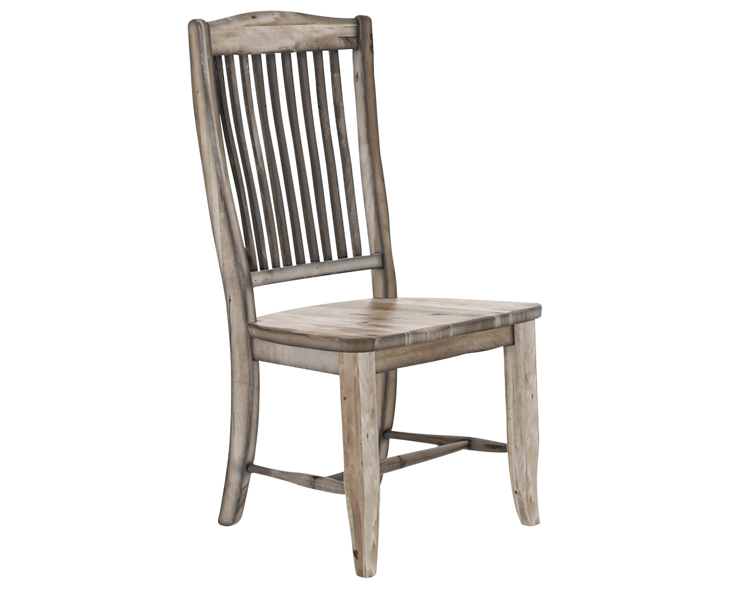 The Canadel Champlain Dining Chair features a sturdy solid wood frame with an eye-catching distressed finish and a vertical slat back. This dining chair can be customized to your decor and design taste.