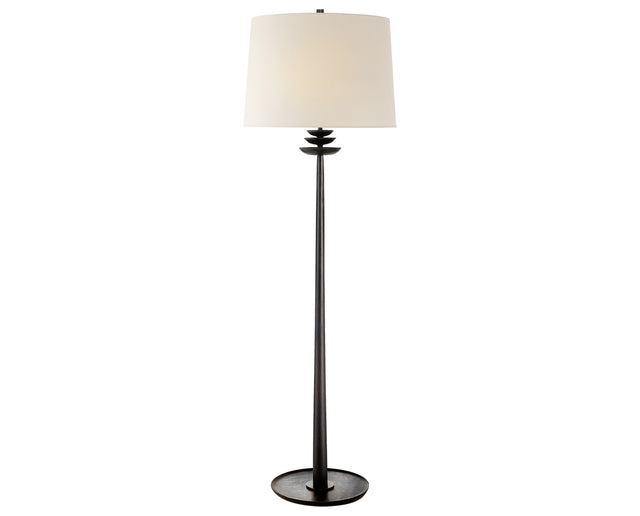 The Beaumont Floor Lamp by AERIN reinterprets classic form through a contemporary lens, offering a refined presence in reading corners or lounge spaces. The flared silhouette is complemented by clean lines and a polished profile, creating a piece that balances decorative appeal with understated luxury. A full linen shade provides warm, ambient light, casting a soft and sophisticated glow.