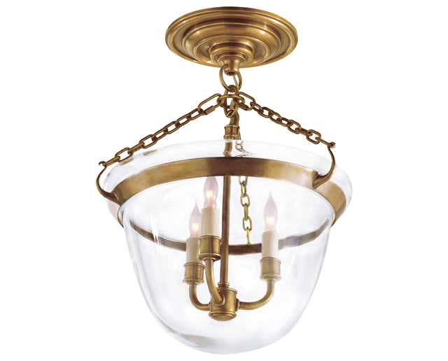 The Country Semi-Flush Bell Jar Lantern by Visual Comfort, designed by Chapman & Myers, brings enduring elegance to both traditional and transitional interiors. Featuring a clear glass shade suspended by classic chain detailing, it offers a graceful nod to historical lighting. Its semi-flush design is ideal for rooms with standard-height ceilings, delivering charm without overwhelming the space.