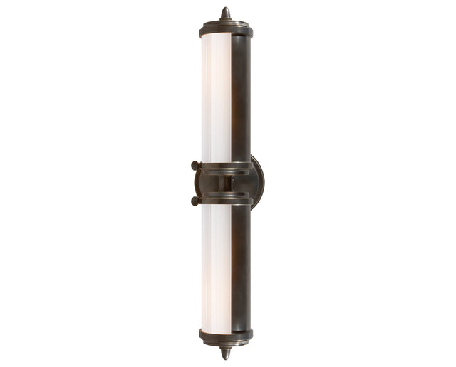 Refined and architectural, the Visual Comfort Merchant Double Bath Light adds a crisp, tailored touch to bathrooms and vanity areas. Featuring a vertical twin-column design with white glass diffusers and a precision-machined metal frame, it delivers bright, even illumination with timeless sophistication. Ideal for flanking mirrors or as a striking accent in transitional and contemporary interiors.