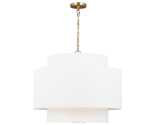 The Sawyer Pendant by Visual Comfort is a modern interpretation of classic elegance. Its distinctive tiered fabric shade provides soft, ambient illumination while maintaining a structured, architectural form. Designed with clean lines and gentle curves, this pendant is perfect for transitional spaces that blend traditional warmth with contemporary clarity.