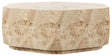 The Elena Coffee Table showcases a bold silhouette rooted in organic design. Made from poplar burl veneer, the faceted profile reveals distinctive graining and natural texture. A plinth-style base grounds the look while elevating the layered geometry. The light-toned finish brings a sculptural elegance to contemporary and transitional interiors alike.