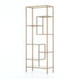 The Helena Brass Bookcase combines minimalist structure with elevated detail. A staggered shelf layout plays with proportion and symmetry, while antique brass-finished iron adds warmth and subtle sheen. Clear glass shelving introduces an airy, open quality that balances the industrial framework, offering versatile storage and display options for any space.