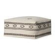 This neutral ivory and brown pouf is a functional accent in any living space, where it can be used as comfortable extra floor seating. The pouf’s brown-toned diamond and striped design is based on traditional rug motifs. The pouf measures 36"W x 36"D x 17"H and is made of polyester and cotton.