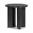 The Paden End Table presents an intriguing study in shape. Brown, black or sandy acacia forms crescent-shaped legs supporting a round tabletop, bringing organic presence to the living room. The Paden End Table is part of the Haiden collection.