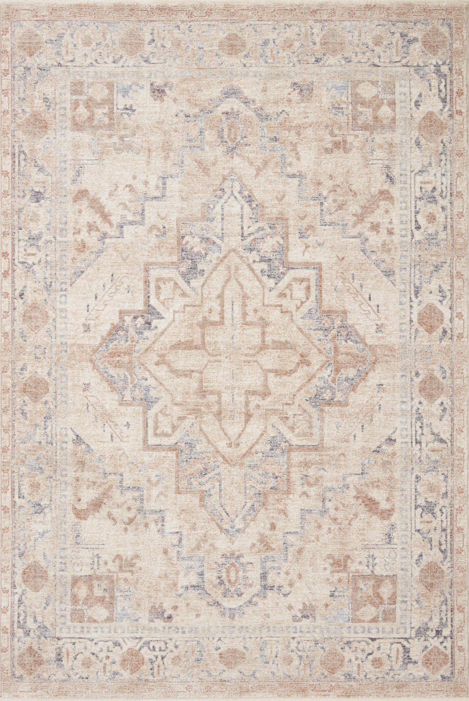 Power-loomed of polyester and viscose pile in Turkey, the Carlisle Collection for Magnolia Home by Joanna Gaines displays a soft color palette and a mix of distressed and traditional-inspired motifs. Crafted by Loloi.
