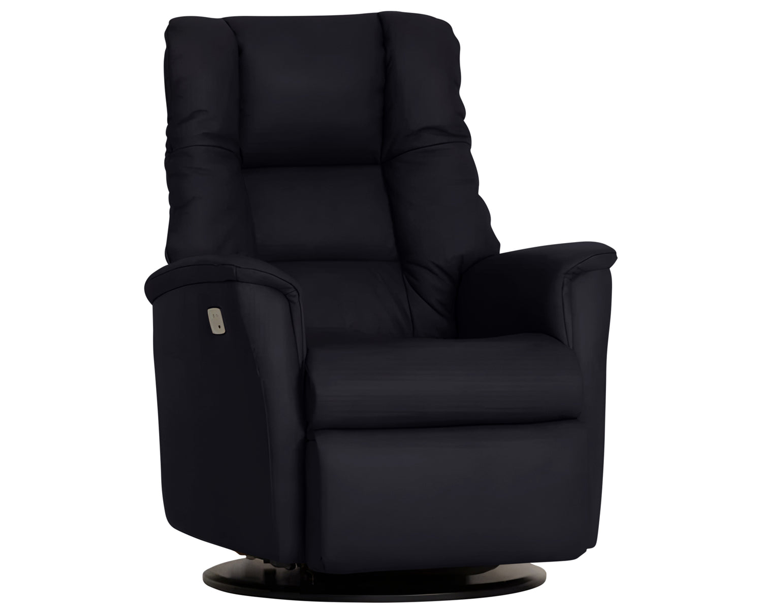 The Norwegian Comfort Victor Recliner gives you gliding, reclining and swivelling functions, as well as an adjustable headrest support and integrated footrest. The Victor is made with high quality cold-cure moulded foam cushioning. This unique space-age technology ensures comfort, body correct support as well as durability. The Victor Recliner is available in a wide range of upholstery options to suit any decor.