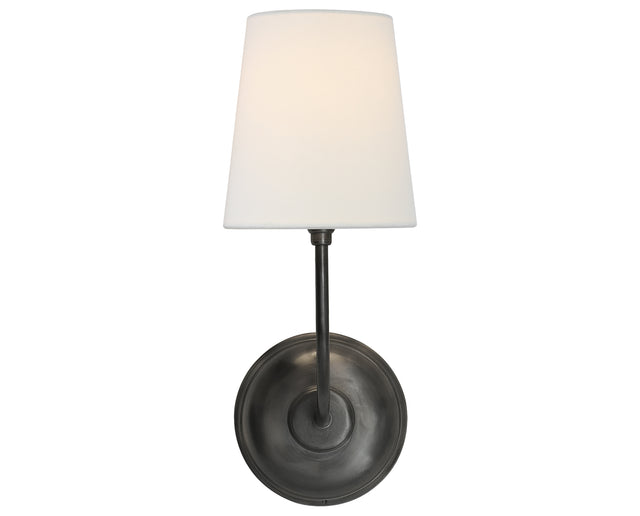 The Vendome Single Sconce sports an alluring design composed of a tall, tapered shade and large circular wall plate. A delicately thin metal arm connects the natural paper shade to the wall plate. Available in a variety of finishes, this fixture is perfect for illuminating modern living rooms and hallways. The Vendome Single Sconce is part of the Thomas O'Brien collection.