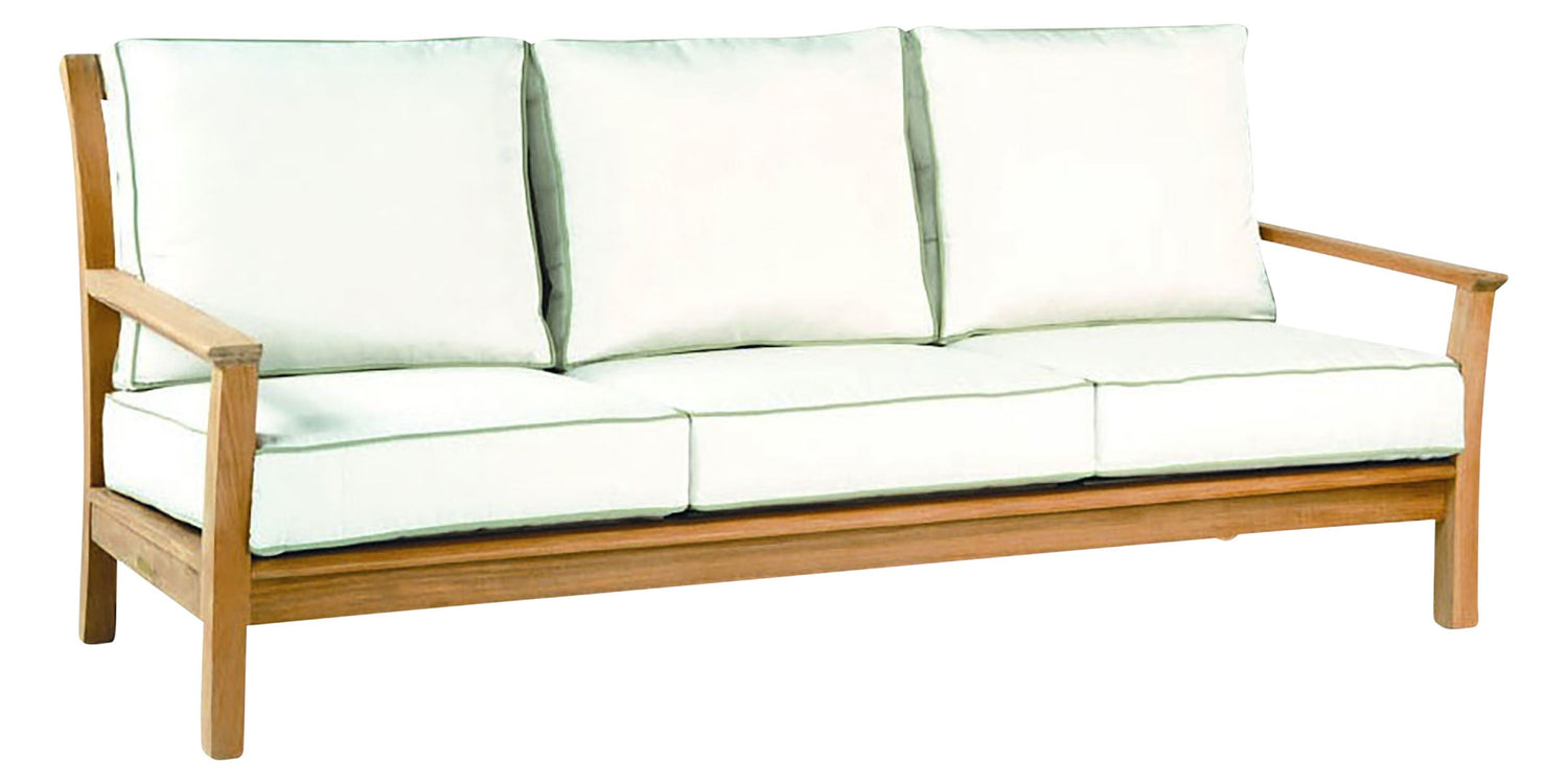 A classically styled teak sofa offering deep-seated comfort and enduring beauty for outdoor environments.