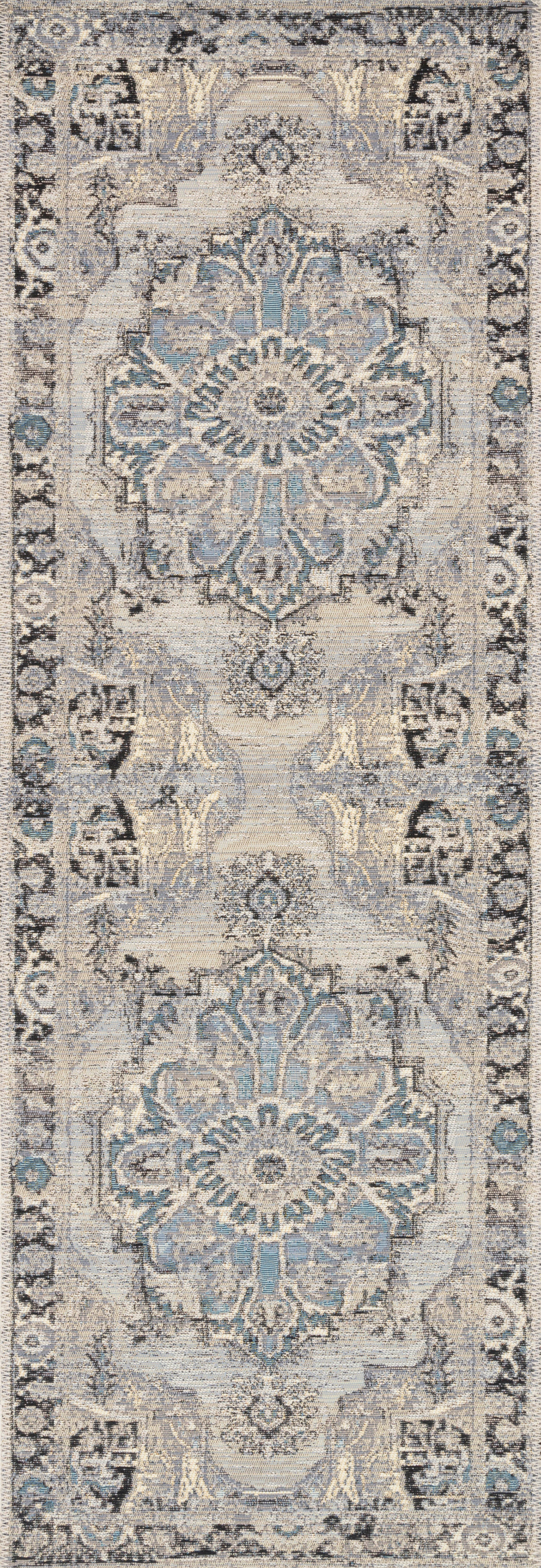 Power-loomed of polypropylene and polyester in Egypt, the Mika Collection is a spectacular display of abstract and tribal-inspired designs. The textured yarn adds beautiful dimension and creates a truly unique look that is long-lasting and durable for outdoor and indoor spaces. Each piece is accented with a blanket-stitch finish.