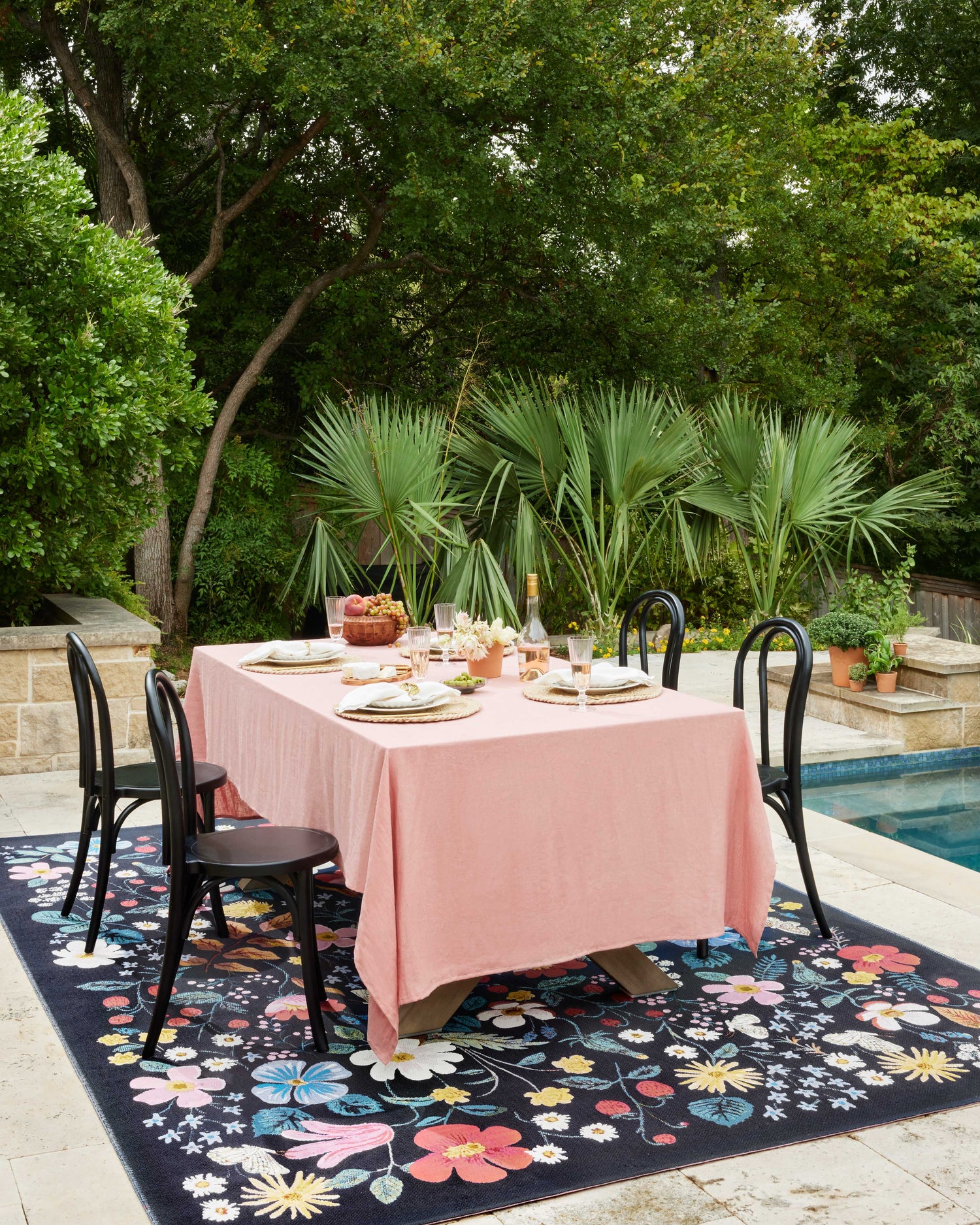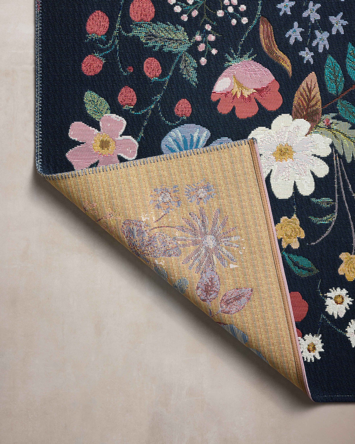 The Perennial Collection is the first outdoor area rug from Rifle Paper Co. x Loloi. Signature florals in bold, vibrant palettes make each rug a standout whether it’s styled indoors or out, on patios or in mudrooms, hallways, or playrooms. The rug is power-loomed of polypropylene and polyester for durability and weather resistance, simply hose off and air-dry when needed. Made in Egypt. This collection is Oeko-Tex® certified, ensuring its materials don't contain harmful substances.