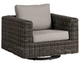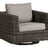 The Ratana Cubo Swivel Gliding Club Chair combines modern design with the comfort of smooth motion seating. Crafted with a Pewter 7mm resin weave over a powder coated Opal Grey aluminum frame, it delivers strength, weather resistance, and refined texture. Cushions in Sunbrella® performance fabrics—Cast Silver, Switch Flax, Switch Silver, or Sahara Sand—offer plush comfort with resistance to fading, moisture, and stains. With its ability to both swivel and glide, this chair is designed for versatile relaxation in any outdoor setting.