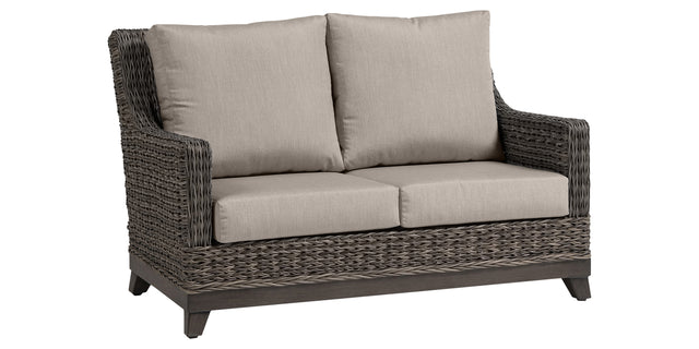 The Ratana Boston Loveseat combines transitional elegance with resilient outdoor craftsmanship, offering a balance of style and comfort for two. Its thick, braided Smoke Grey resin weave delivers a natural texture and contemporary character, expertly wrapped over a powder coated Ash Grey aluminum frame for long-lasting durability. Cushions upholstered in Sunbrella® performance fabric provide superior comfort and resistance to fading, moisture, and everyday use.