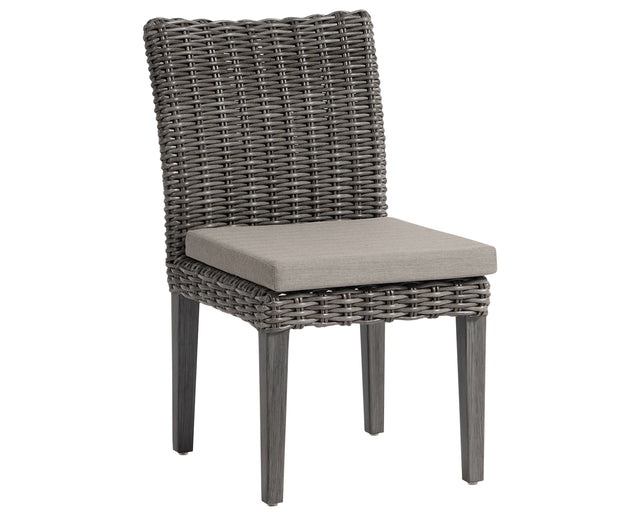 The Ratana Budapest Dining Side Chair pairs contemporary outdoor style with lasting durability. Built with a Pewter resin weave and supported by a Nimbus Star aluminum frame, it offers a stable, lightweight structure that stands up to outdoor conditions. With four available Sunbrella® fabric options, the cushioned seat provides tailored comfort to complement your dining arrangement.