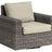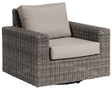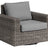 The Ratana Mission Hill Swivel Gliding Club Chair brings movement and comfort to sophisticated outdoor seating. Crafted with a Pewter resin weave over a durable Nimbus Star aluminum frame, this chair combines textural depth with lasting performance. Its smooth swivel and gentle gliding motion offer a relaxing seating experience, while plush Sunbrella® cushions, available in four fabric options, provide comfort and weather resistance. With its contemporary styling and versatile functionality, this chair elevates any outdoor retreat.